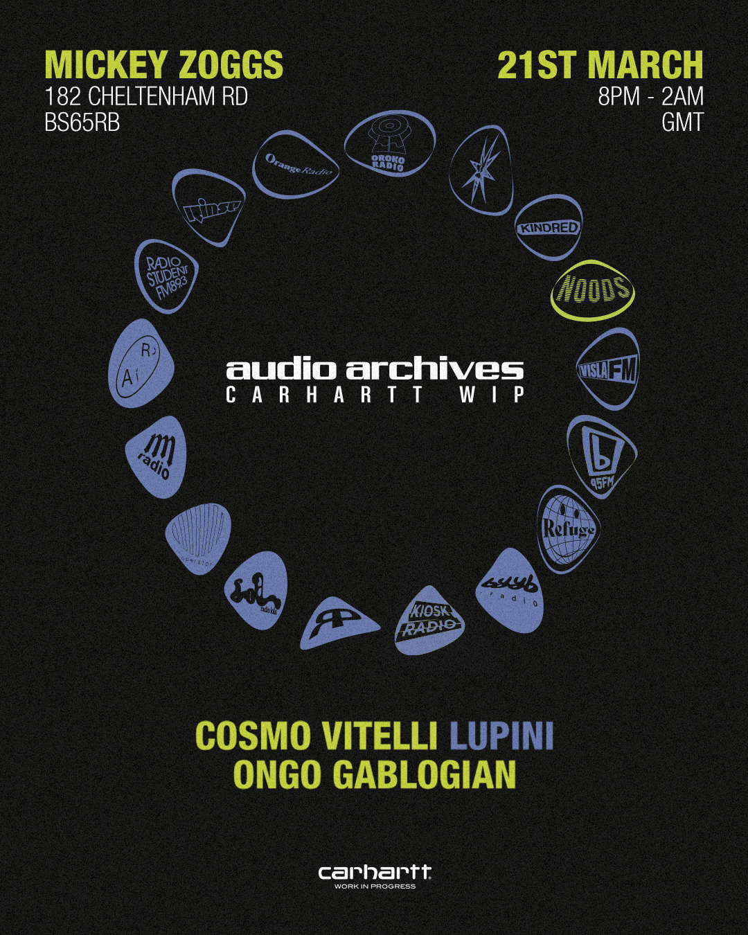 Exclusive Noods Radio x Carhartt WIP pieces from the Audio Archives capsule will be available at the event.
