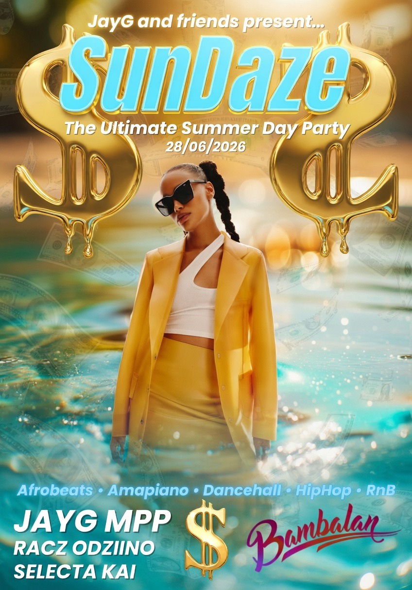 Picture this: sunshine kissing your skin, premium cocktails flowing, dollar-dripping aesthetics everywhere, bodies moving as one, and pure summer euphoria under the open sky. Gold everything, money motifs, and that irresistible “money rains” energy – because at SunDaze, we celebrate abundance, good music, and even better company.
