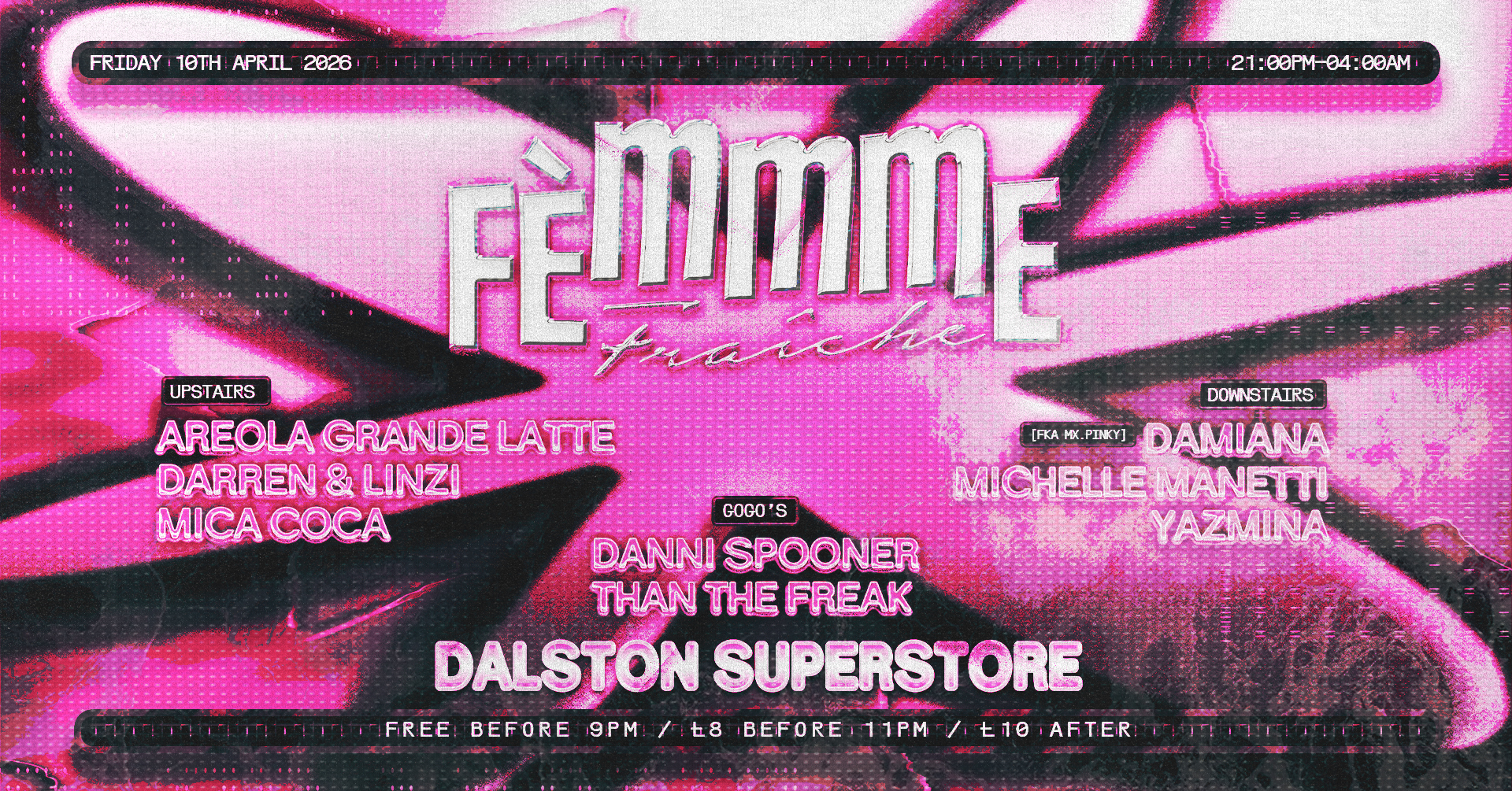 Our last party we celebrated 10 years, this party is No 60 – so we thought, time for a freshen up. Welcome to our new look Fraicher than fresh Fèmmme Fraîche re-brand, thanks to the handy-werk of minnim graphixx