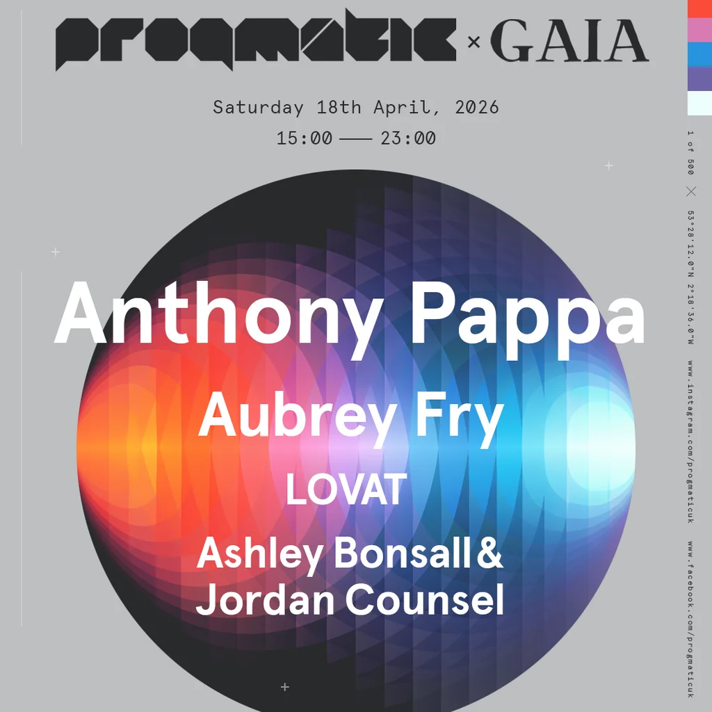 Progmatic returns 18.04.26, in collab with GAIA, in the new surroundings of Six Trees - Trafford, for an unmissable day party.