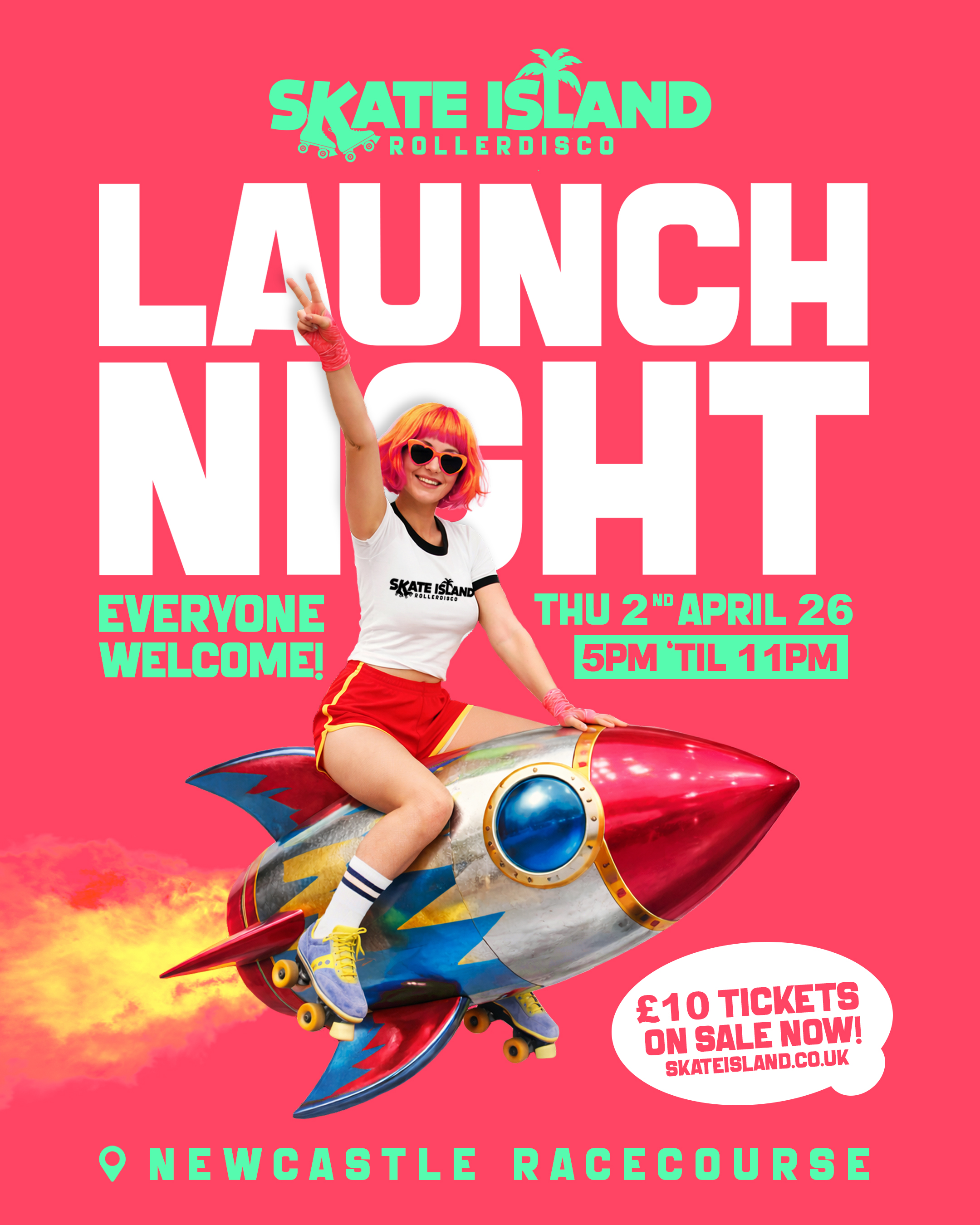 LAUNCH NIGHT 🛼🚀// Skate Island// Roller Disco & Entertainment Space// Thursday 2nd April 17:00 - 23:00// £10 Tickets On Sale Now!Join us as Skate Island rolls into life for our official opening, Thursday 2nd April at Newcastle Racecourse, High Gosforth Park 🌴✨ Be one of the first to experience our very own skaters paradise... Featuring a purpose built roller disco & entertainment space, local DJs supplying the grooves, fully stocked bars, photo ops & an incredible selection of street food vendors!Designed for all ages and abilities, Skate Island blends the nostalgia of classic roller disco with modern entertainment... From student nights and themed Friday events to family-friendly sessions on weekends. Each ticket includes a 90-minute skating slot with skate hire included, and skaters are invited to dress up and join immersive disco-style experience! 🎟️ Discounted tickets available: £10+bf( all tkts prices inc your skates for the slot )