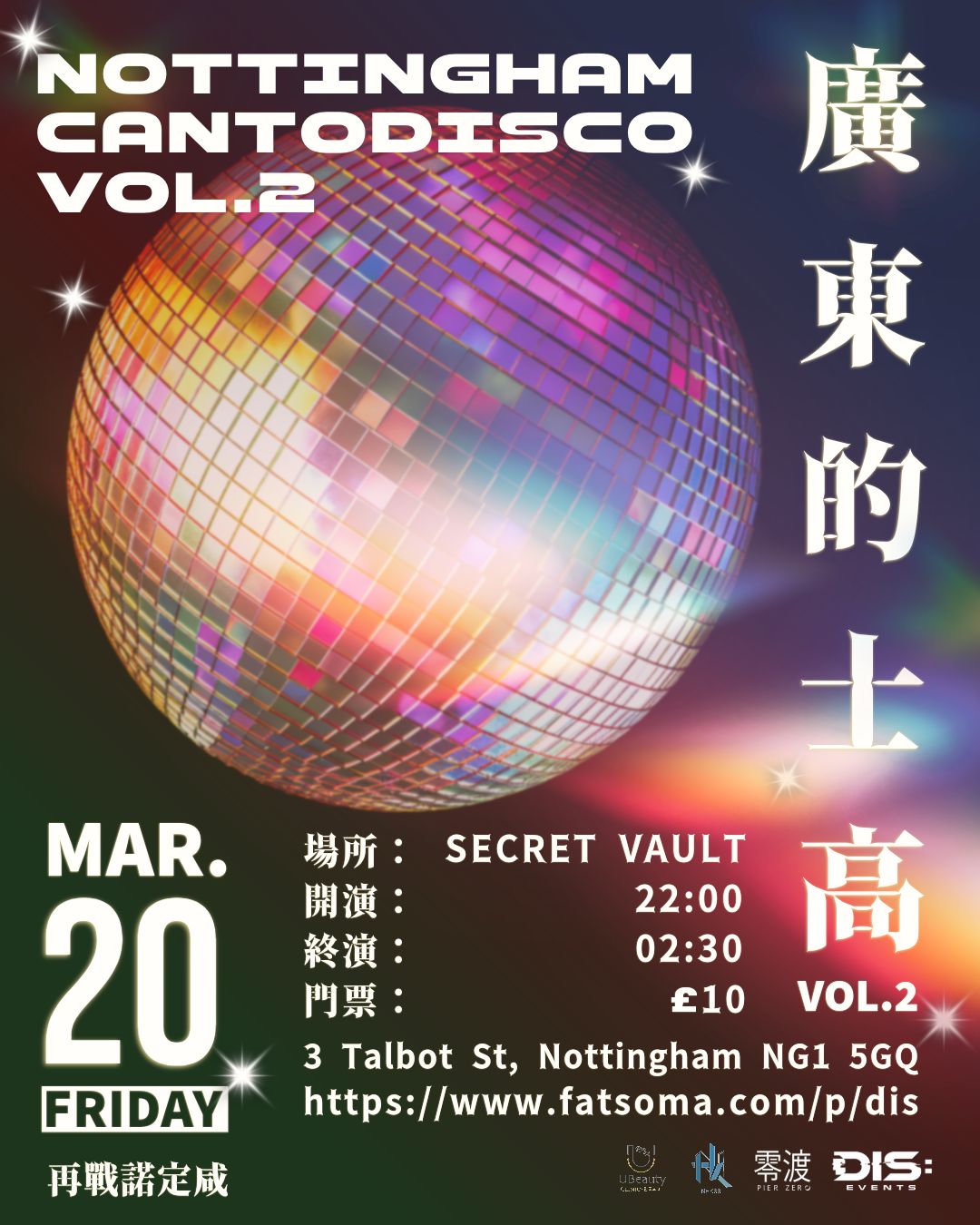 🪩 Nottingham,我哋覆桌喇!廣東歌之夜 Round 2 ⚡️上次有嚟嘅朋友,聽講大家仲係「唔夠喉」?Birmingham 嗰晚玩得幾癲?問吓去過嘅朋友就知!我哋決定要帶呢個極限 Hype 翻去我哋嘅起點 —— Nottingham!Birmingham 站好評如潮嘅 DJ Ken 親自把關,保證由第一首歌開始 High 到尾!我哋亦知道大家星期五放完工想早啲玩,特別提前到 10:00 PM 開始!🕊️ 特價 Early Bird 門票現正開售:極限量 30 張,賣完即止!手慢真係無!【 活動詳情 EVENT INFO 】📅 DATE: 20/03 (Fri)⏰ TIME: 10:00 PM – 2:30 AM (早一小時開始!)📍 LOCATION: Secret Vault (3 Talbot St, Nottingham NG1 5GQ)🔞 ENTRY: 18+ Only (Must bring Physical Photo ID)👗 DRESS CODE: Hong Kong Style (港風)🤝 合作夥伴 SUPPORTING PARTNERS▫️ 零渡文化 PierZero Culture / U Beauty Nottingham🎓 學生會合作夥伴 STUDENT SOCIETY PARTNERS▫️ Nottingham Hong Kong Student Society (NHKSS)▫️ Nottingham Hong Kong PASS